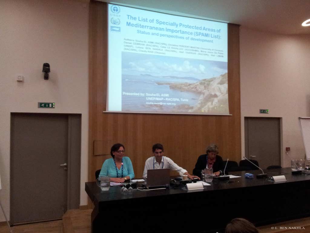 - Les ateliers jumelés : "mutualiser et approfondir les compétences des personnels" et "développer des programme de formation régionaux" où une présentation sur "La liste des Aires Spécialement Protégées d'Importance Méditerranéenne (ASPIM): état et perspectives de développement" a été faite. (présentée par Souha EL ASMI)
