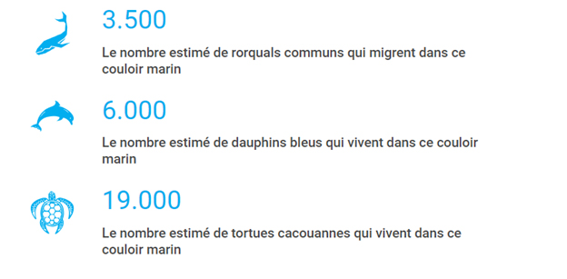Le couloir est notamment utilisé par le rorqual commun lors de sa migration des côtes africaines de la Méditerranée vers le golfe de León et la Mer de Ligurie.